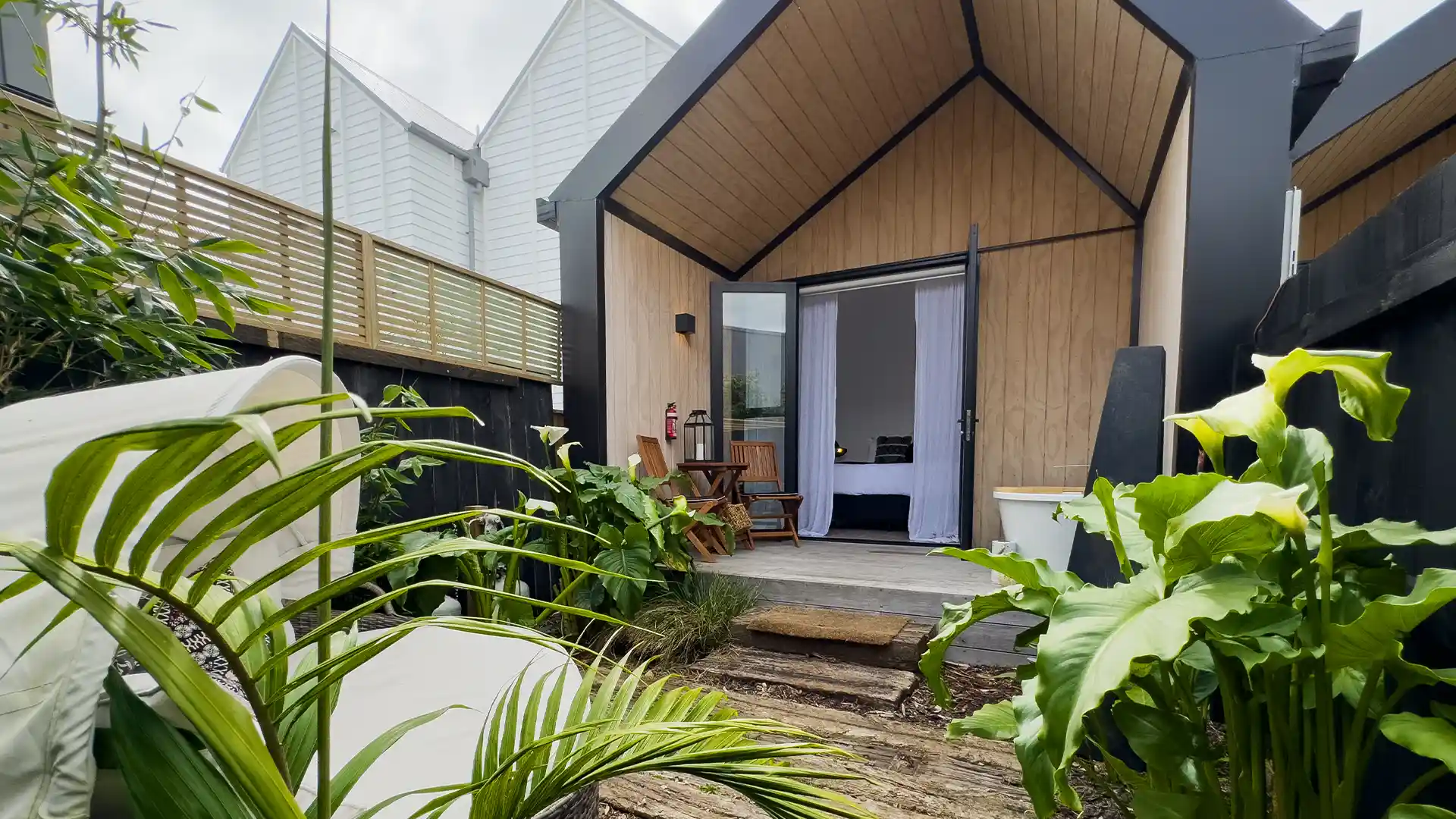 Warm, modern one-bedroom villas with backyard gardens and outdoor baths. Designed for couples wanting a relaxed, intimate space with a touch of nature. Perfect for proposals, anniversaries or cosy stays linked to a bigger celebration at Pinnacle of Matakana or Villa Royale.